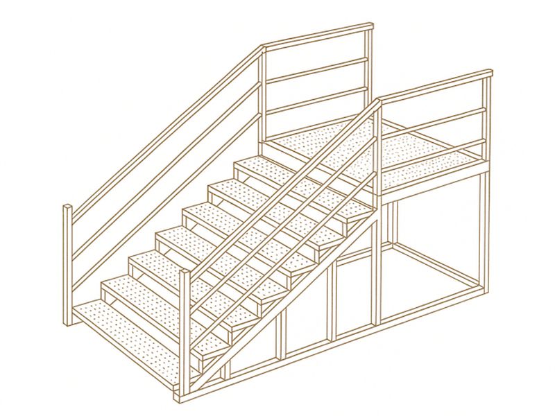 Лестница металлическая с перилами (10 ступеней, рифленый лист, без площадки) вариант 1